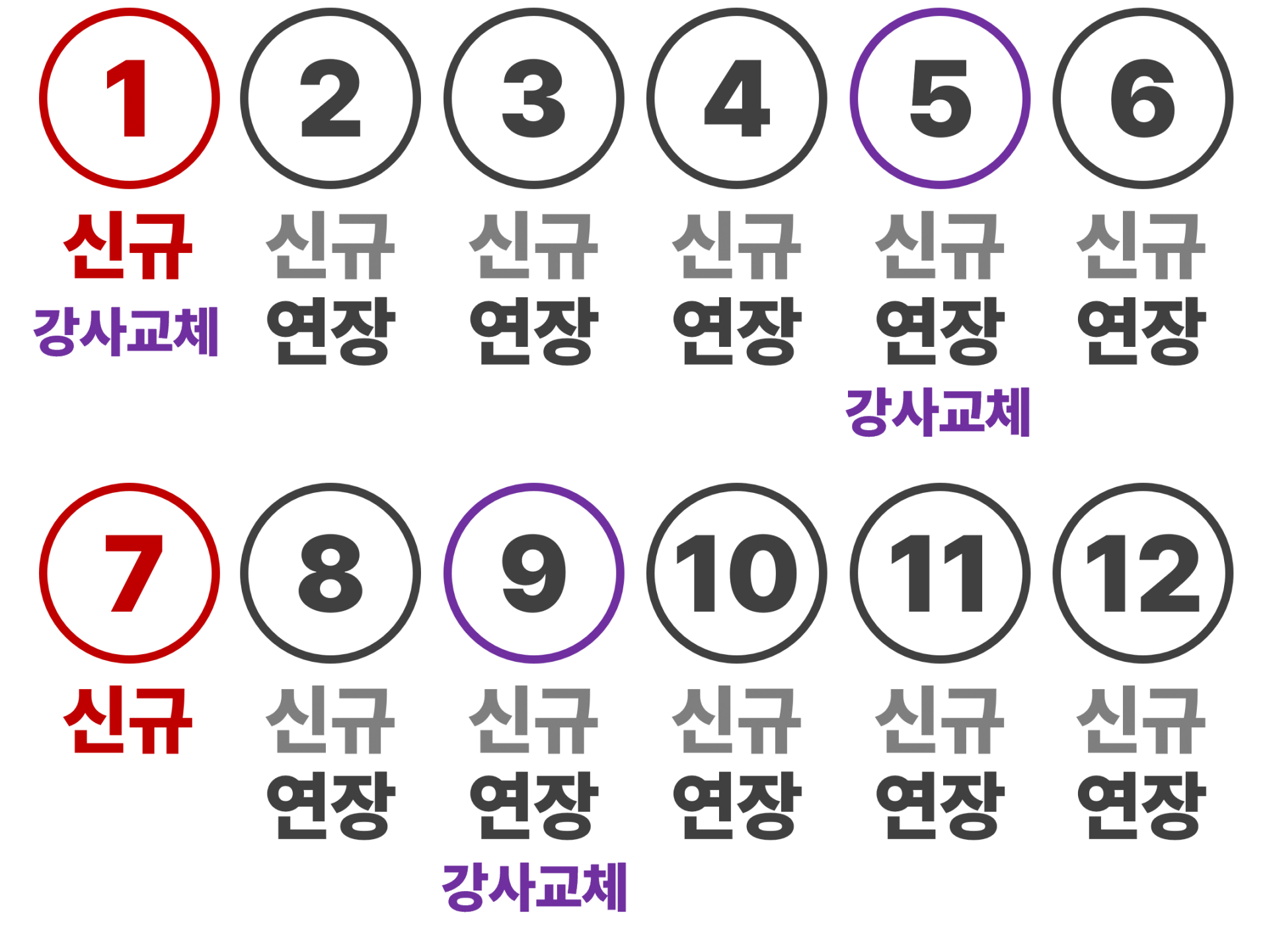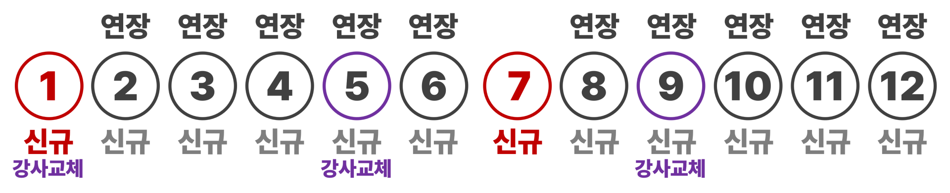 | 강습회원 (연장) | 매월 1일~말일까지 이용매년 1월/7월은 연장불가 | 연장기간 현장접수 |